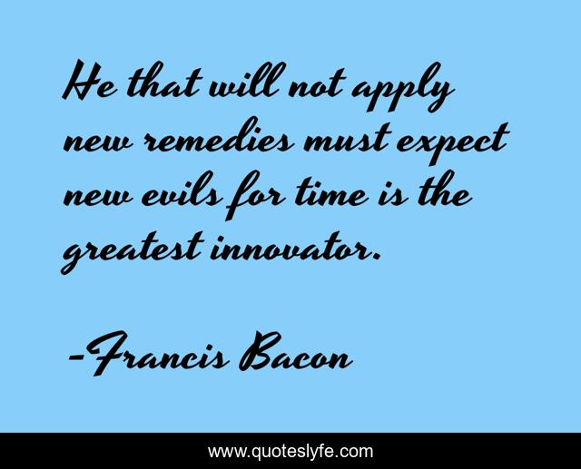 This page presents the quote "He that will not apply new remedies must expect new evils for time is the greatest innovator.". Author of this quote is Francis Bacon. .