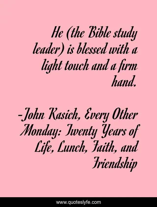 "John Kasich, Every Other Monday: Twenty Years of Life, Lunch, Faith, and Friendship Quotes." Quoteslyfe.com, 2025. Mon. 08 Dec. 2025. <https://www.quoteslyfe.com/quote/He-the-Bible-study-leader-is-blessed-206054>.