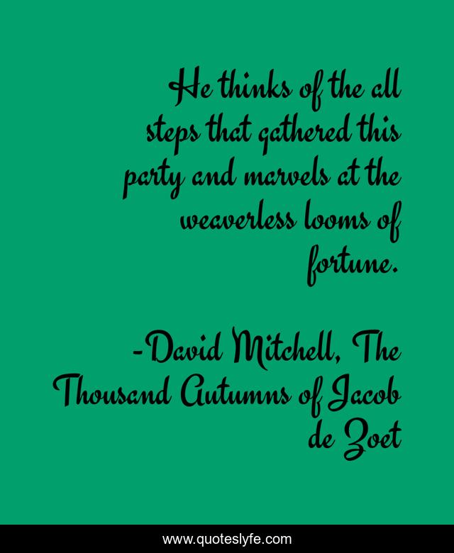 This page presents the quote "He thinks of the all steps that gathered this party and marvels at the weaverless looms of fortune.". Author of this quote is David Mitchell, The Thousand Autumns of Jacob de Zoet. .