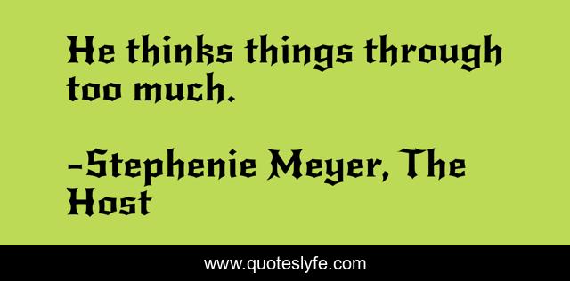 "Stephenie Meyer, The Host Quotes." Quoteslyfe.com, 2025. Mon. 08 Dec. 2025. <https://www.quoteslyfe.com/quote/He-thinks-things-through-too-much-40558>.