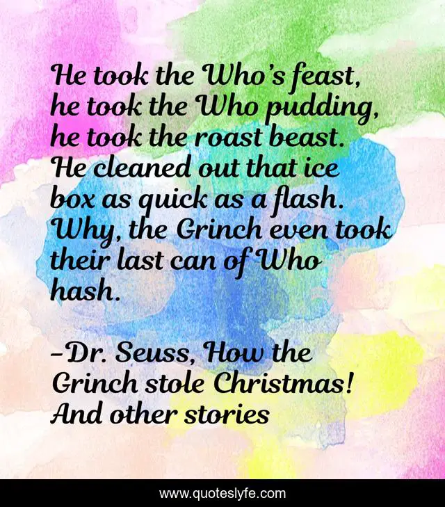 "Dr. Seuss, How the Grinch stole Christmas! And other stories Quotes." Quoteslyfe.com, 2025. Sat. 06 Dec. 2025. <https://www.quoteslyfe.com/quote/He-took-the-Who-s-feast-he-220492>.