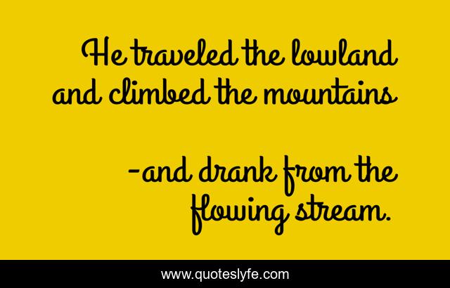 "and drank from the flowing stream. Quotes." Quoteslyfe.com, 2025. Mon. 08 Dec. 2025. <https://www.quoteslyfe.com/quote/He-traveled-the-lowland-and-climbed-the-215593>.