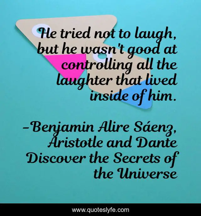 This page presents the quote "He tried not to laugh, but he wasn't good at controlling all the laughter that lived inside of him.". Author of this quote is Benjamin Alire Sáenz, Aristotle and Dante Discover the Secrets of the Universe. This quote is about ari, laughter, dante,.