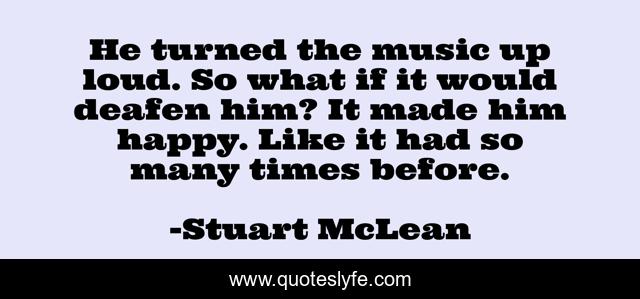 This page presents the quote "He turned the music up loud. So what if it would deafen him? It made him happy. Like it had so many times before.". Author of this quote is Stuart McLean. .