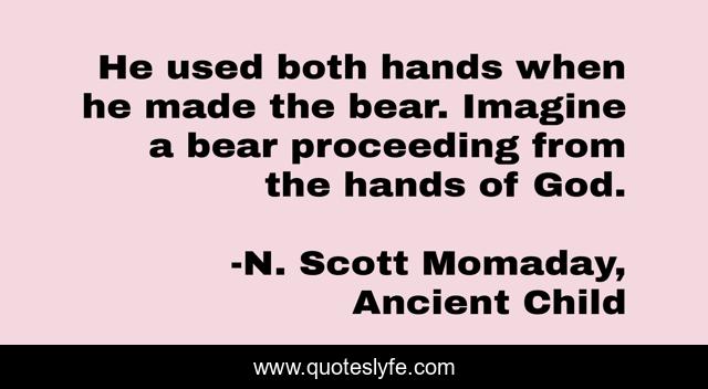 This page presents the quote "He used both hands when he made the bear. Imagine a bear proceeding from the hands of God.". Author of this quote is N. Scott Momaday, Ancient Child. .