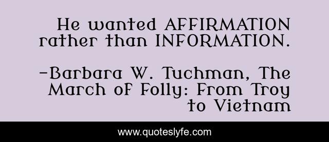 "Barbara W. Tuchman, The March of Folly: From Troy to Vietnam Quotes." Quoteslyfe.com, 2025. Sat. 06 Dec. 2025. <https://www.quoteslyfe.com/quote/He-wanted-AFFIRMATION-rather-than-INFORMATION-218204>.