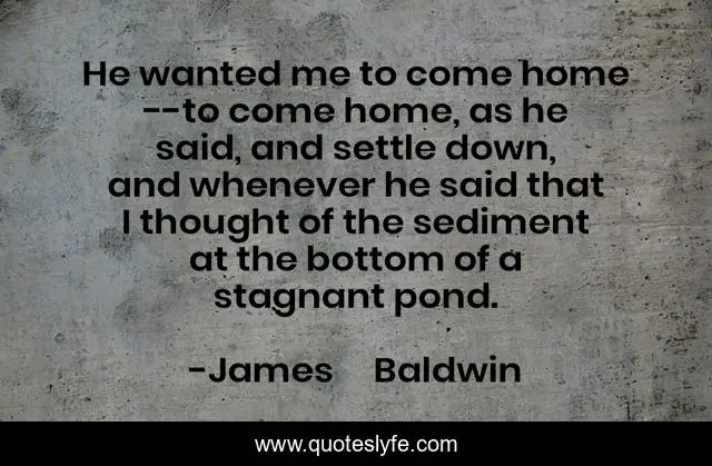 This page presents the quote "He wanted me to come home--to come home, as he said, and settle down, and whenever he said that I thought of the sediment at the bottom of a stagnant pond.". Author of this quote is James Baldwin. This quote is about home, stagnation,.