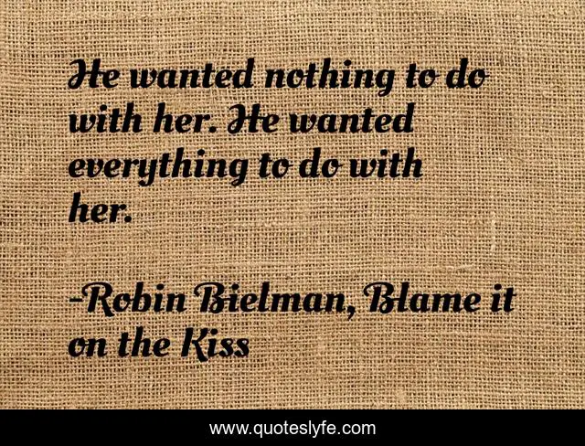 This page presents the quote "He wanted nothing to do with her. He wanted everything to do with her.". Author of this quote is Robin Bielman, Blame it on the Kiss. This quote is about small-town-romance, contemporary-romance,.