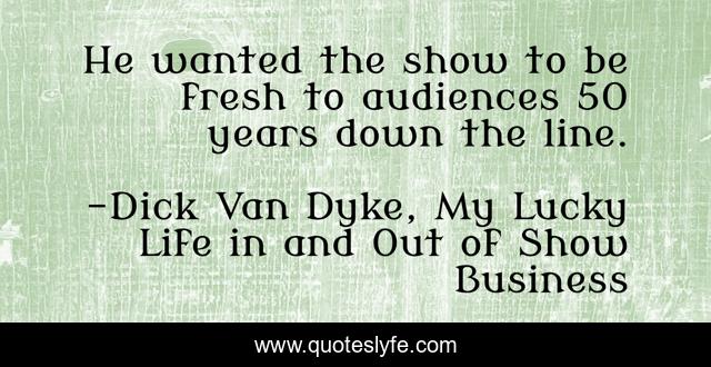 This page presents the quote "He wanted the show to be fresh to audiences 50 years down the line.". Author of this quote is Dick Van Dyke, My Lucky Life in and Out of Show Business. This quote is about culture, legacy, creativity, perspective,.