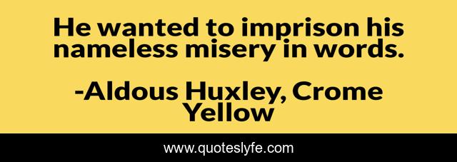 This page presents the quote "He wanted to imprison his nameless misery in words.". Author of this quote is Aldous Huxley, Crome Yellow. This quote is about poetry, misery,.