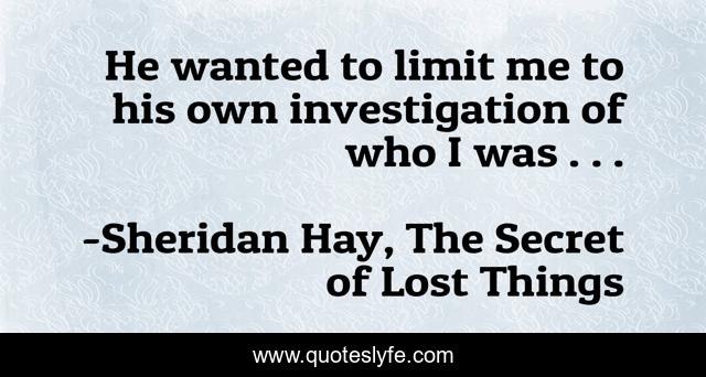 This page presents the quote "He wanted to limit me to his own investigation of who I was . . .". Author of this quote is Sheridan Hay, The Secret of Lost Things. This quote is about self-realization, otherness,.