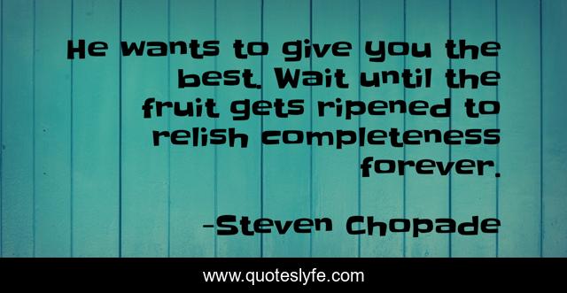 This page presents the quote "He wants to give you the best. Wait until the fruit gets ripened to relish completeness forever.". Author of this quote is Steven Chopade. .