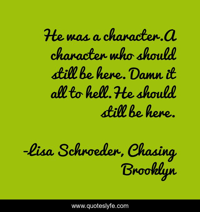 This page presents the quote "He was a character.A character who should still be here. Damn it all to hell.He should still be here.". Author of this quote is Lisa Schroeder, Chasing Brooklyn. .