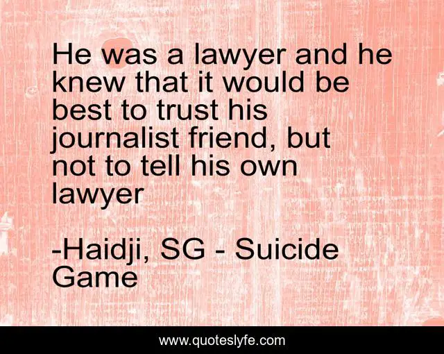 "Haidji, SG - Suicide Game Quotes." Quoteslyfe.com, 2025. Mon. 08 Dec. 2025. <https://www.quoteslyfe.com/quote/He-was-a-lawyer-and-he-knew-101180>.