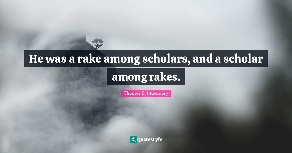 This page presents the quote "He was a rake among scholars, and a scholar among rakes.". Author of this quote is Thomas B. Macaulay. This quote is about rakes, scholar,.
