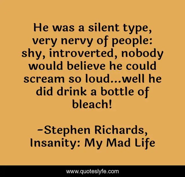 "Stephen Richards, Insanity: My Mad Life Quotes." Quoteslyfe.com, 2025. Mon. 08 Dec. 2025. <https://www.quoteslyfe.com/quote/He-was-a-silent-type-very-nervy-221023>.