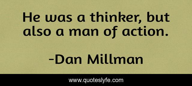This page presents the quote "He was a thinker, but also a man of action.". Author of this quote is Dan Millman. .