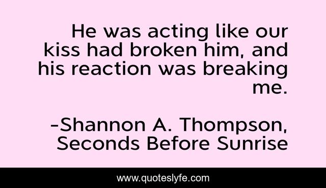 "Shannon A. Thompson, Seconds Before Sunrise Quotes." Quoteslyfe.com, 2025. Mon. 08 Dec. 2025. <https://www.quoteslyfe.com/quote/He-was-acting-like-our-kiss-had-124754>.