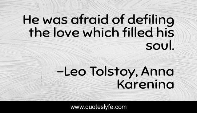 This page presents the quote "He was afraid of defiling the love which filled his soul.". Author of this quote is Leo Tolstoy, Anna Karenina. This quote is about anna-karenina, fear, love, affection, levin,.