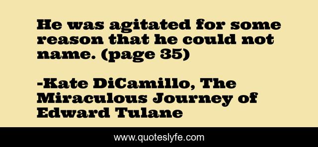 "Kate DiCamillo, The Miraculous Journey of Edward Tulane Quotes." Quoteslyfe.com, 2025. Fri. 05 Dec. 2025. <https://www.quoteslyfe.com/quote/He-was-agitated-for-some-reason-that-196279>.