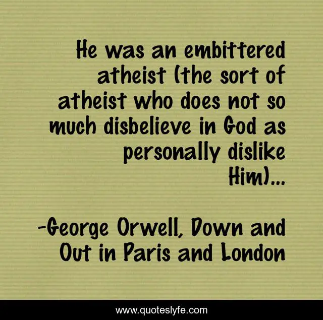 "George Orwell, Down and Out in Paris and London Quotes." Quoteslyfe.com, 2025. Fri. 05 Dec. 2025. <https://www.quoteslyfe.com/quote/He-was-an-embittered-atheist-the-sort-175931>.