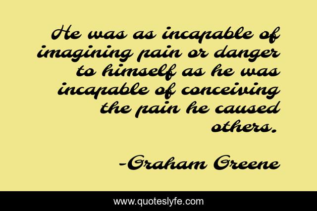 This page presents the quote "He was as incapable of imagining pain or danger to himself as he was incapable of conceiving the pain he caused others.". Author of this quote is Graham Greene. .