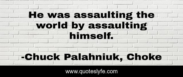 "Chuck Palahniuk, Choke Quotes." Quoteslyfe.com, 2025. Fri. 05 Dec. 2025. <https://www.quoteslyfe.com/quote/He-was-assaulting-the-world-by-assaulting-141499>.