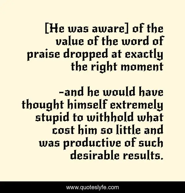 "and he would have thought himself extremely stupid to withhold what cost him so little and was productive of such desirable results. Quotes." Quoteslyfe.com, 2025. Sat. 06 Dec. 2025. <https://www.quoteslyfe.com/quote/He-was-aware-of-the-value-of-180144>.