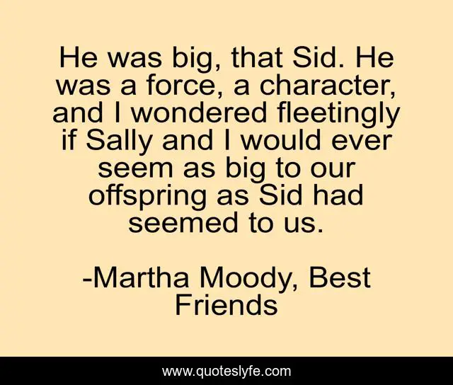 "Martha Moody, Best Friends Quotes." Quoteslyfe.com, 2025. Sat. 06 Dec. 2025. <https://www.quoteslyfe.com/quote/He-was-big-that-Sid-He-was-212055>.