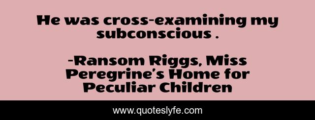 "Ransom Riggs, Miss Peregrine’s Home for Peculiar Children Quotes." Quoteslyfe.com, 2025. Fri. 05 Dec. 2025. <https://www.quoteslyfe.com/quote/He-was-cross-examining-my-subconscious-206005>.