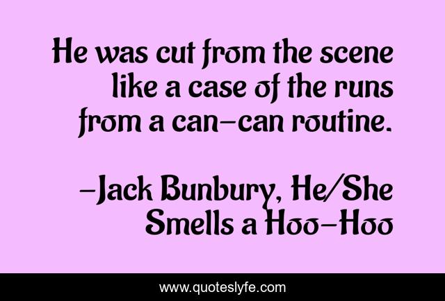 "Jack Bunbury, He/She Smells a Hoo-Hoo Quotes." Quoteslyfe.com, 2025. Mon. 08 Dec. 2025. <https://www.quoteslyfe.com/quote/He-was-cut-from-the-scene-like-231046>.