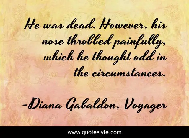 "Diana Gabaldon, Voyager Quotes." Quoteslyfe.com, 2025. Mon. 08 Dec. 2025. <https://www.quoteslyfe.com/quote/He-was-dead-However-his-nose-throbbed-252338>.