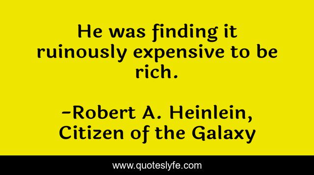 This page presents the quote "He was finding it ruinously expensive to be rich.". Author of this quote is Robert A. Heinlein, Citizen of the Galaxy. .