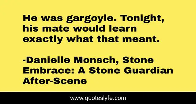 This page presents the quote "He was gargoyle. Tonight, his mate would learn exactly what that meant.". Author of this quote is Danielle Monsch, Stone Embrace: A Stone Guardian After-Scene. This quote is about gargoyle, romance, paranormal,.