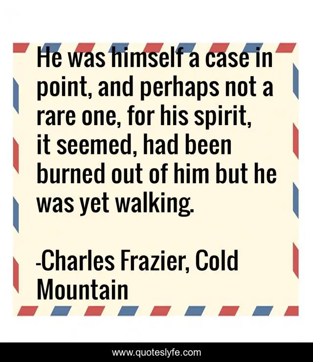 This page presents the quote "He was himself a case in point, and perhaps not a rare one, for his spirit, it seemed, had been burned out of him but he was yet walking.". Author of this quote is Charles Frazier, Cold Mountain. .