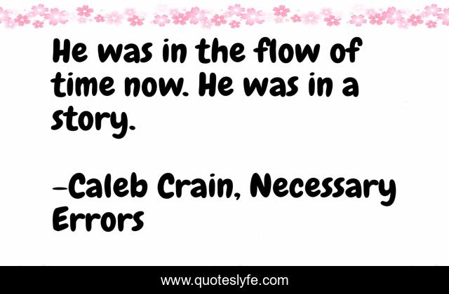 This page presents the quote "He was in the flow of time now. He was in a story.". Author of this quote is Caleb Crain, Necessary Errors. This quote is about story, time,.