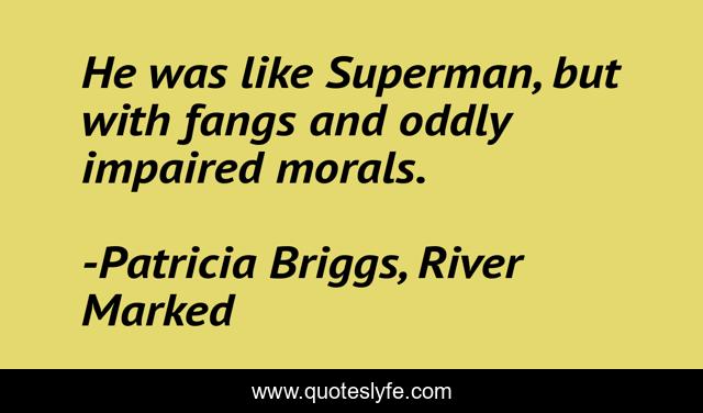 This page presents the quote "He was like Superman, but with fangs and oddly impaired morals.". Author of this quote is Patricia Briggs, River Marked. This quote is about mercy, vampire,.