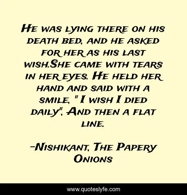 "Nishikant, The Papery Onions Quotes." Quoteslyfe.com, 2025. Sat. 06 Dec. 2025. <https://www.quoteslyfe.com/quote/He-was-lying-there-on-his-death-48759>.