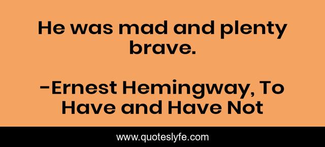 This page presents the quote "He was mad and plenty brave.". Author of this quote is Ernest Hemingway, To Have and Have Not. This quote is about madness, bravery,.