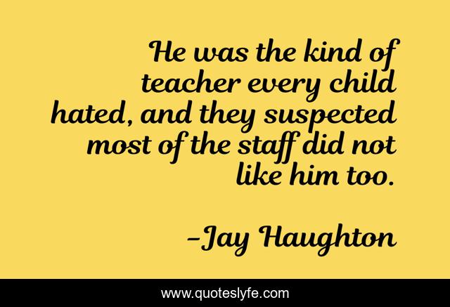 This page presents the quote "He was the kind of teacher every child hated, and they suspected most of the staff did not like him too.". Author of this quote is Jay Haughton. .