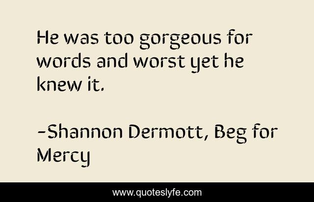 "Shannon Dermott, Beg for Mercy Quotes." Quoteslyfe.com, 2025. Fri. 05 Dec. 2025. <https://www.quoteslyfe.com/quote/He-was-too-gorgeous-for-words-and-18136>.