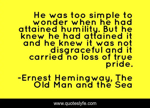 This page presents the quote "He was too simple to wonder when he had attained humility. But he knew he had attained it and he knew it was not disgraceful and it carried no loss of true pride.". Author of this quote is Ernest Hemingway, The Old Man and the Sea. This quote is about simplicity, pride, humility,.