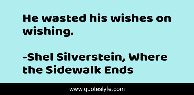 "Shel Silverstein, Where the Sidewalk Ends Quotes." Quoteslyfe.com, 2025. Mon. 08 Dec. 2025. <https://www.quoteslyfe.com/quote/He-wasted-his-wishes-on-wishing-258596>.