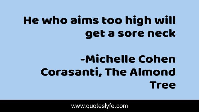This page presents the quote "He who aims too high will get a sore neck". Author of this quote is Michelle Cohen Corasanti, The Almond Tree. This quote is about depressed, advice, protectiveness,.