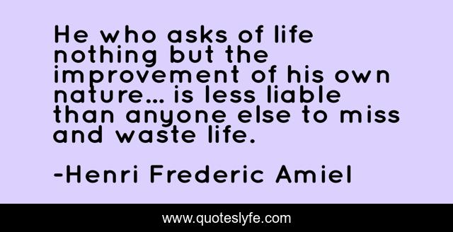 This page presents the quote "He who asks of life nothing but the improvement of his own nature... is less liable than anyone else to miss and waste life.". Author of this quote is Henri Frederic Amiel. This quote is about nothing, life, improvement,.