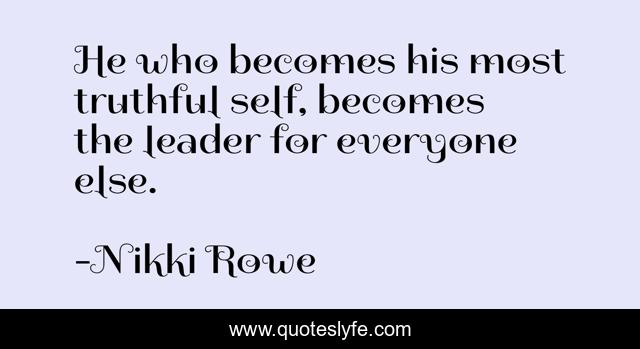 This page presents the quote "He who becomes his most truthful self, becomes the leader for everyone else.". Author of this quote is Nikki Rowe. This quote is about spirituality, understanding, leader, wisdom,.