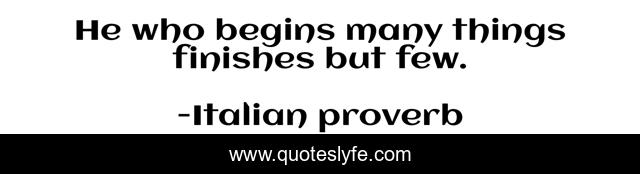 This page presents the quote "He who begins many things finishes but few.". Author of this quote is Italian proverb. .