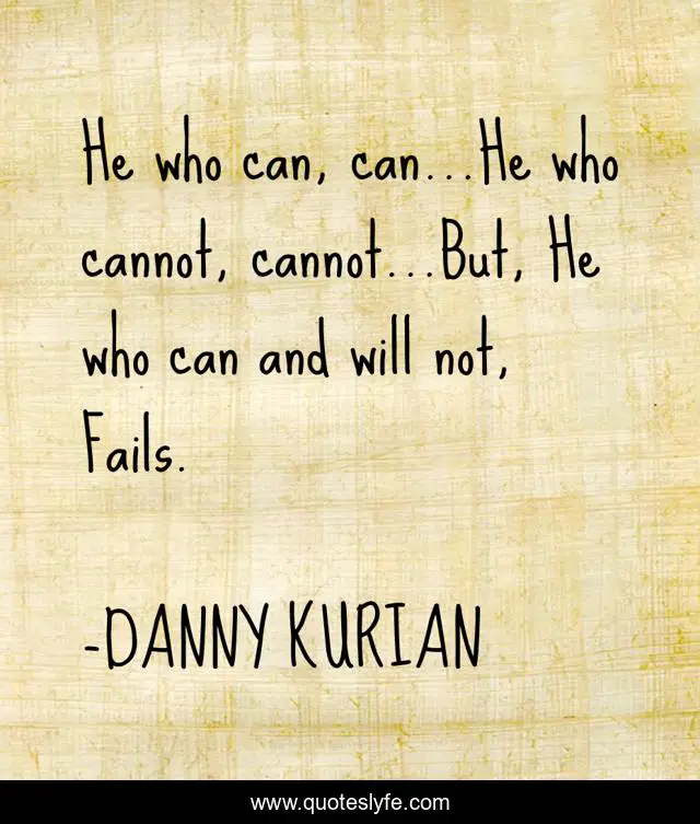 "DANNY KURIAN Quotes." Quoteslyfe.com, 2025. Fri. 05 Dec. 2025. <https://www.quoteslyfe.com/quote/He-who-can-can-He-who-cannot-125631>.