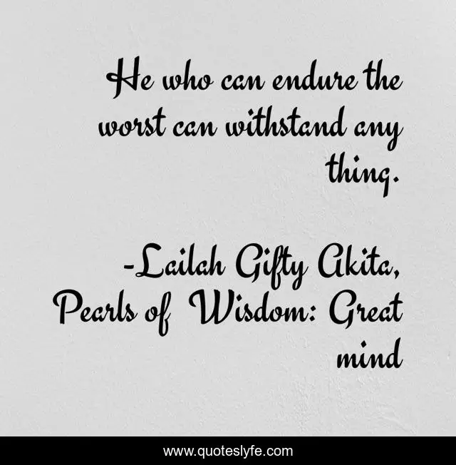 "Lailah Gifty Akita, Pearls of Wisdom: Great mind Quotes." Quoteslyfe.com, 2025. Fri. 05 Dec. 2025. <https://www.quoteslyfe.com/quote/He-who-can-endure-the-worst-can-85443>.