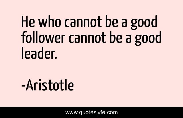 This page presents the quote "He who cannot be a good follower cannot be a good leader.". Author of this quote is Aristotle. This quote is about leadership, followship,.